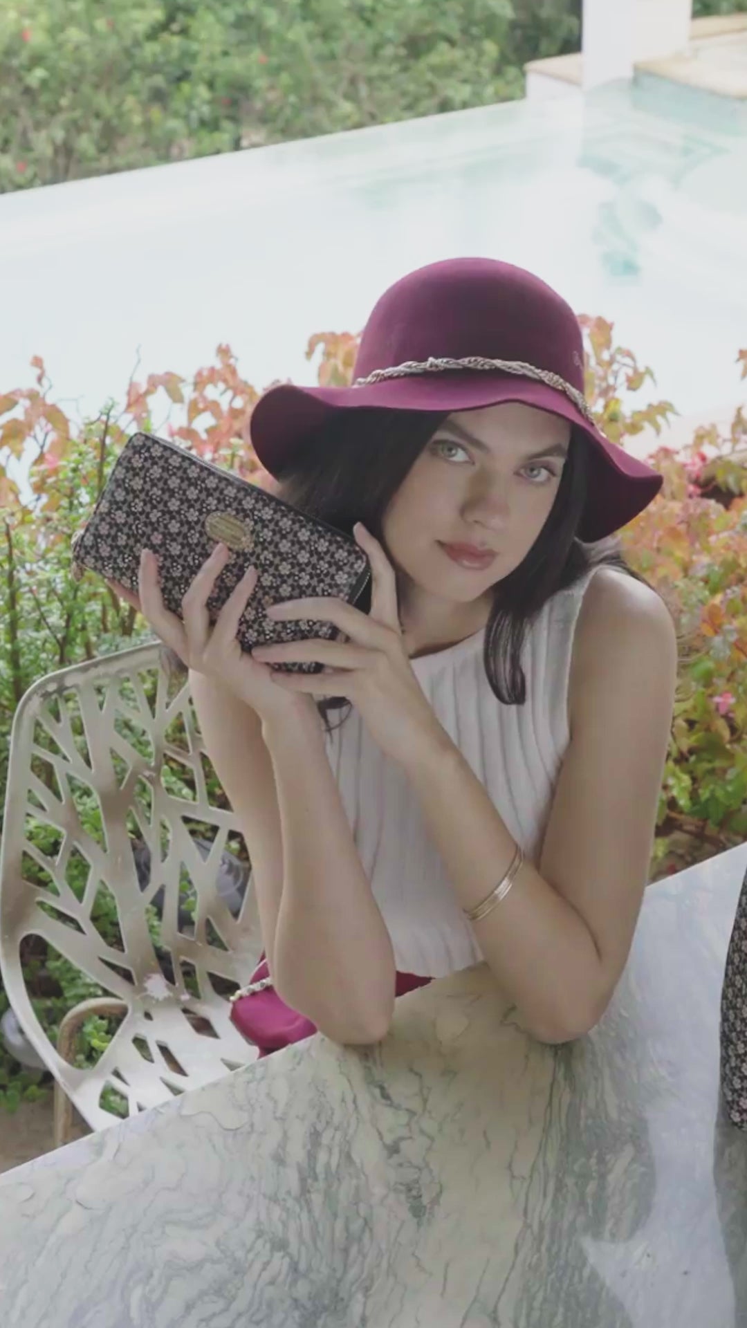 Shimmer on the move. The Starlight Royale Wristlet Wallet blends hands-free ease with high-fashion flair. Drenched in radiant florals and hand-embellished crystals, this compact piece doubles as a mini clutch for your most dazzling moments.